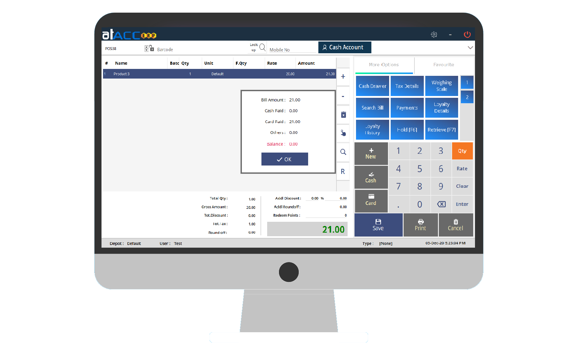 You can easily initiate the payment request from the atACC ERP 19 POS while settling the payment as card. And once initiated the employee doesn’t need to re-enter the payment again in the EDC machine which will make the process effortless and time saving in a busy sales counter. The EDC device is capable to handle the payment in multiple form be it Card or QR code based this single device can handle all the work for you. You can also check the status of the payment from the ERP itself even if it’s a UPI based transaction.